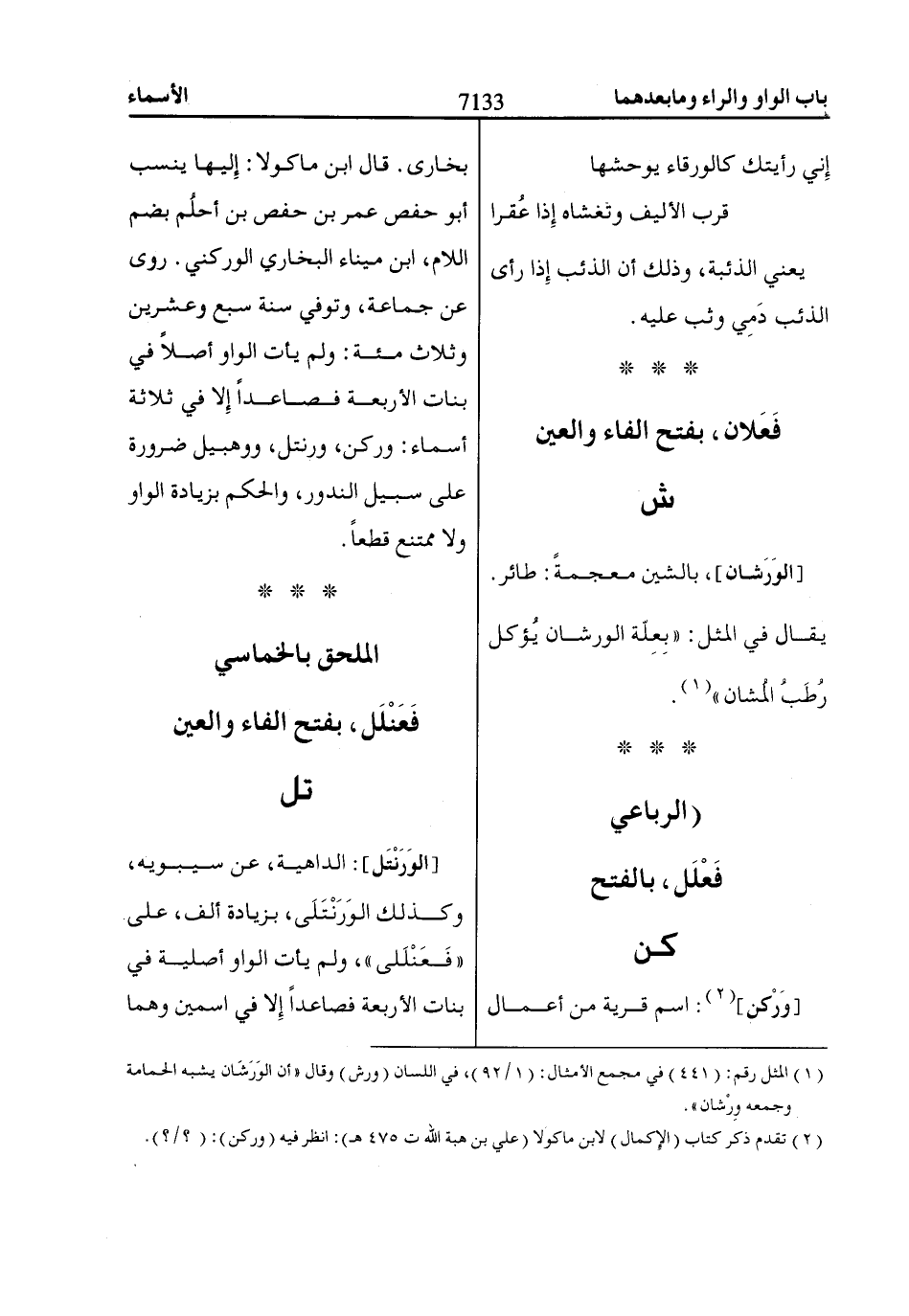 (2) تقدم ذكر كتاب (الإِكمال) لابن ماكولا (علي بن هبة اللّاه ت 475 هـ): انظر فيه (وركن): (؟ /؟ ).