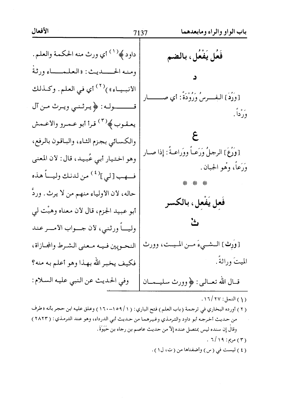 قال اللّاه تعالى: وَوَرِثَ سُلَيْماانُ دااوُدَ «1» أي ورث منه الحكمة والعلم.