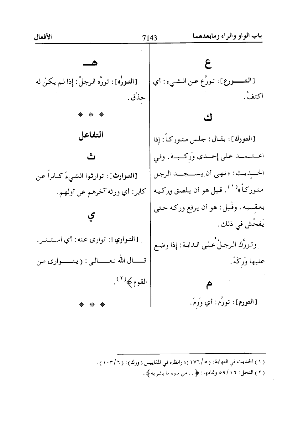 [التورع]: تورَّع عن الشيء: أي اكتفَّ.