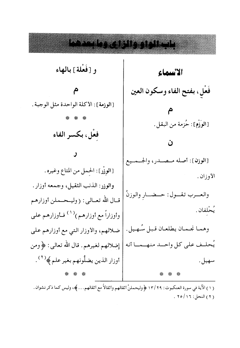 باب الواو والزاي وما بعدهما
