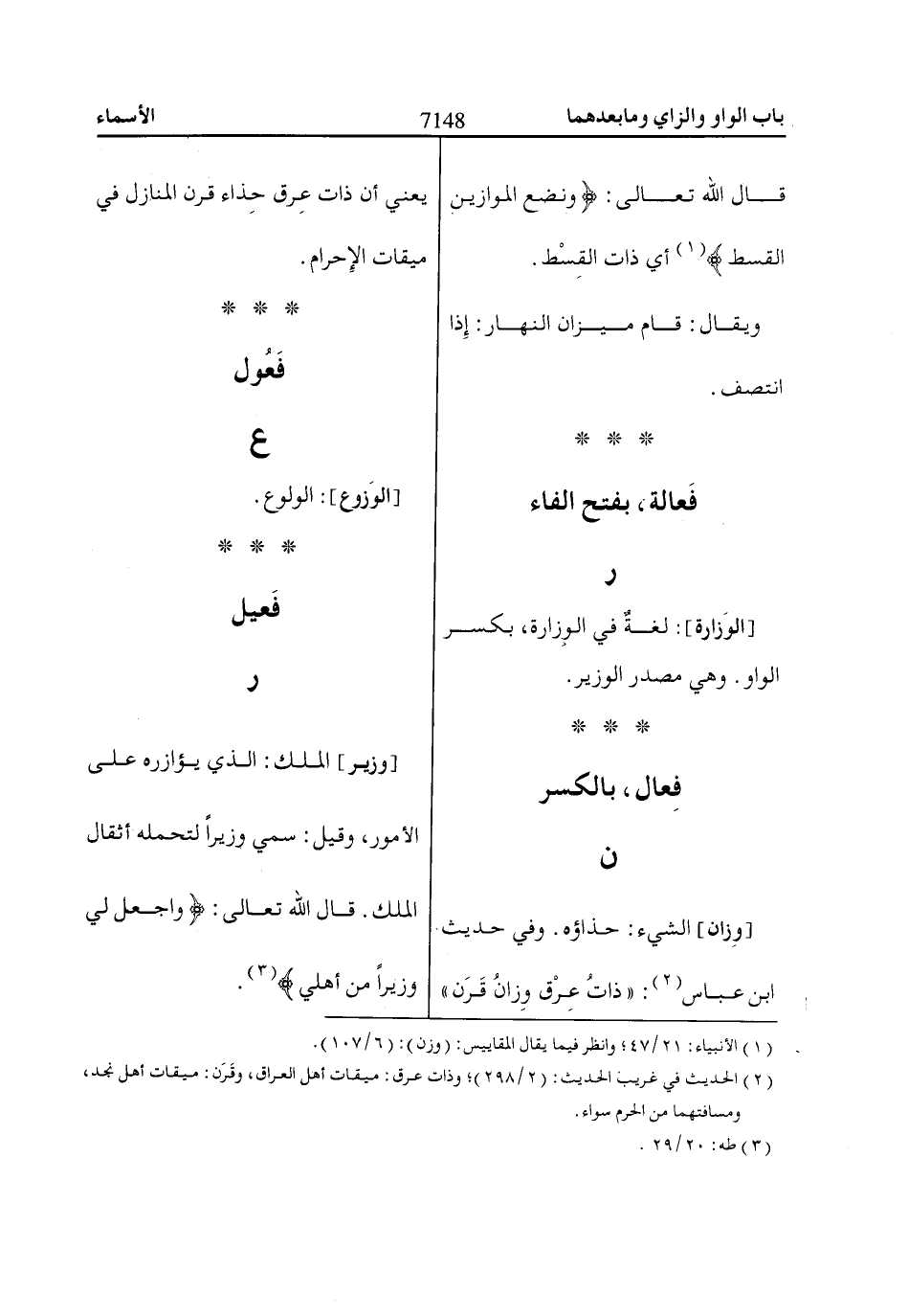 (1) الأنبياء: 21/ 47؛ وانظر فيما يقال المقاييس: (وزن): (6/ 107).