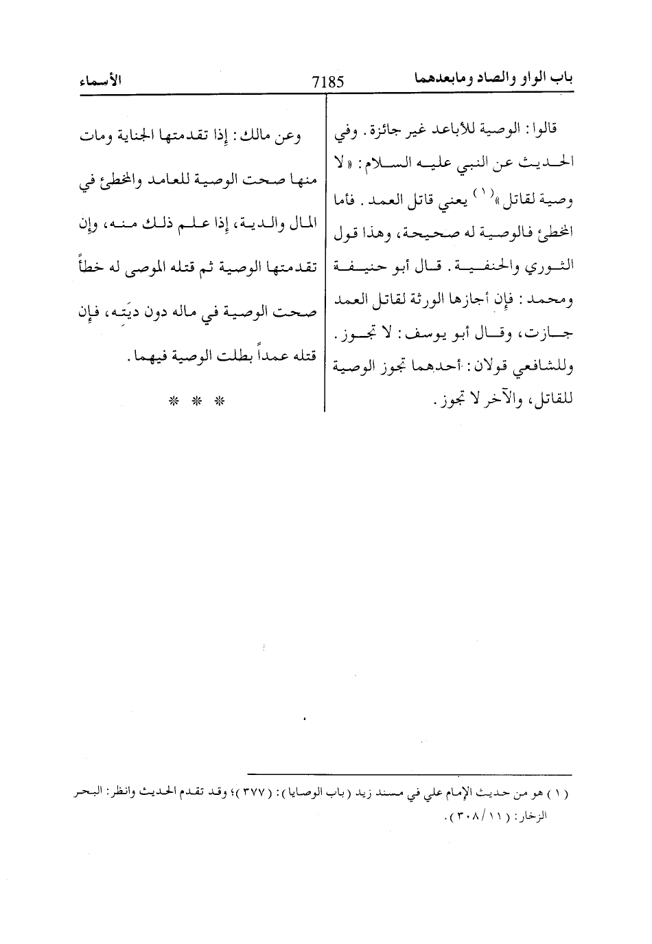 وفي الحديث عن النبي عليه السلام: «لا وصية لقاتل» «1»