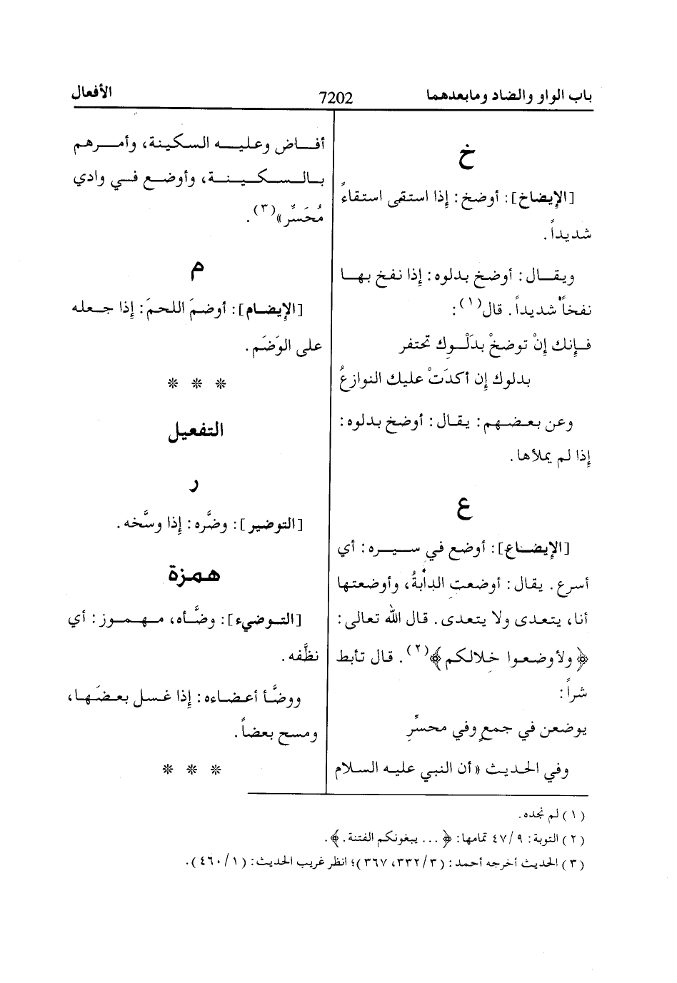 وفي الحديث «أن النبي عليه السلام أفاض وعليه السكينة، وأمرهم بالسكينة، وأوضع في وادي مُحَسِّر» «3»