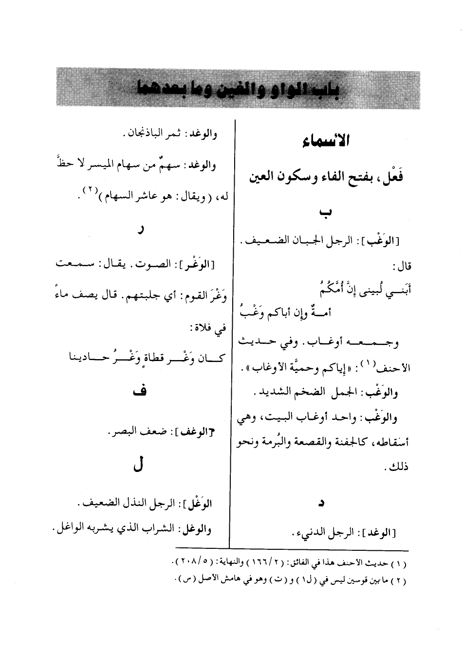 باب الواو والغين وما بعدهما