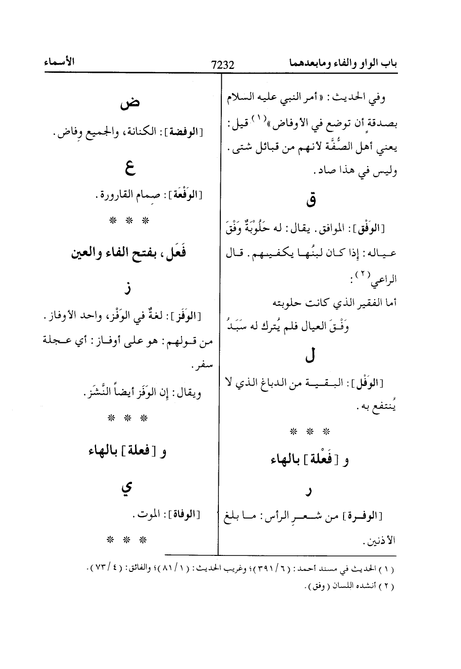 وفي الحديث: «أمر النبي عليه السلام بصدقةٍ أن توضع في الأوفاض» «1»