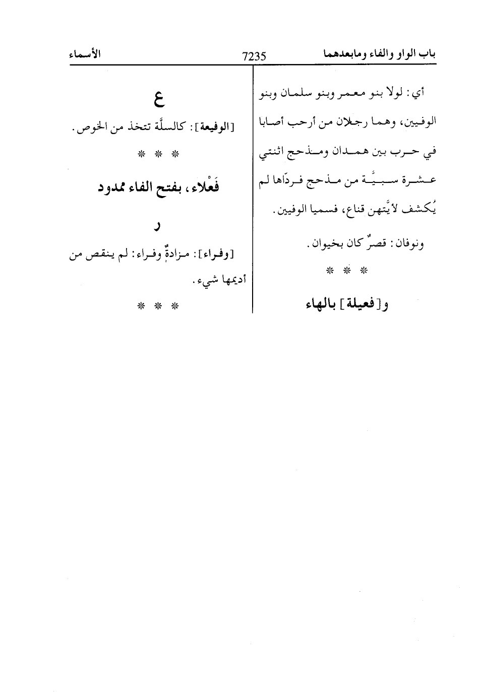 [وفراء]: مزادةٌ وفراء: لم ينقص من أديمها شيء.