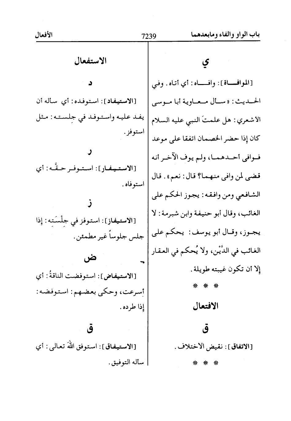 [الاستيفاق]: استوفق اللّاهَ تعالى: أي سأله التوفيق.