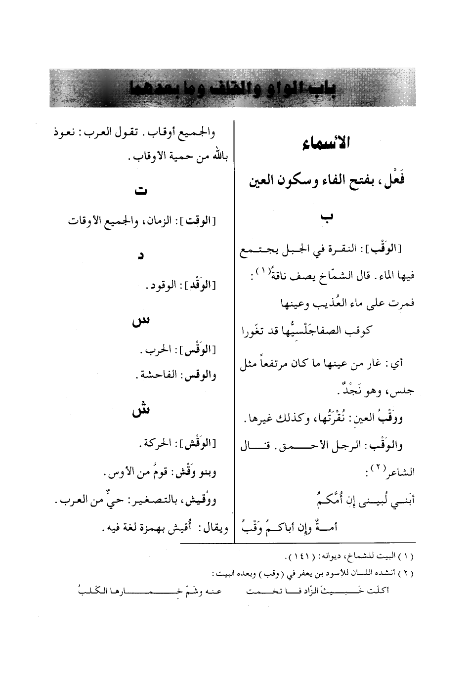 والوَقْب: الرجل الأحمق. قال الشاعر «2»: