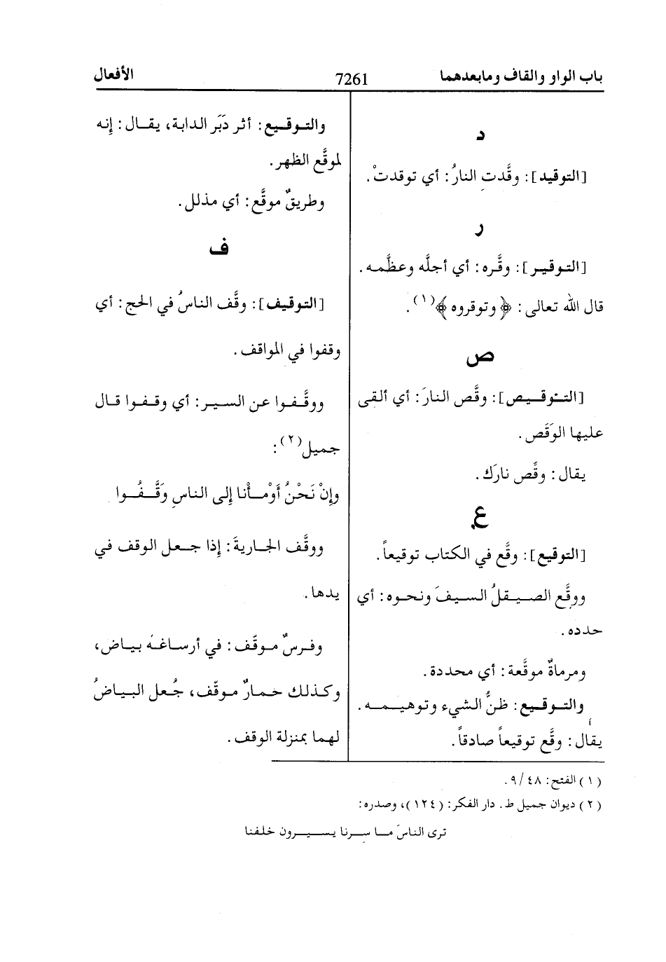 ووقَّفوا عن السير: أي وقفوا قال جميل «2»: