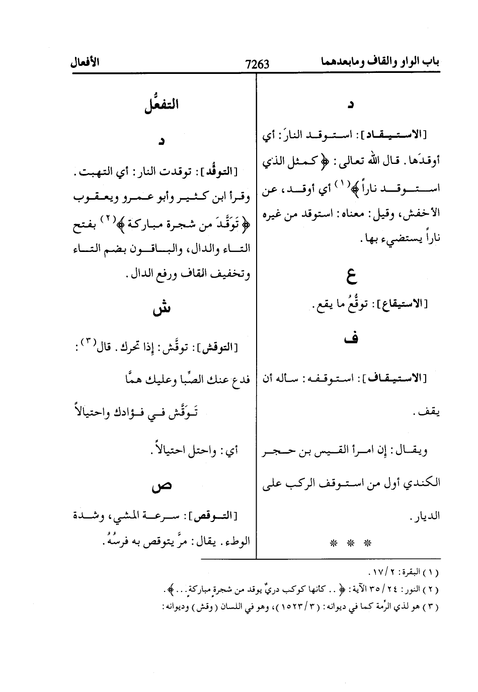 [الاستيقاد]: استوقد النارَ: أي أوقدَها. قال اللّاه تعالى: كَمَثَلِ الَّذِي اسْتَوْقَدَ نااراً «1» أي أوقد، عن الأخفش، وقيل: معناه: استوقد من غيره ناراً يستضيء بها.