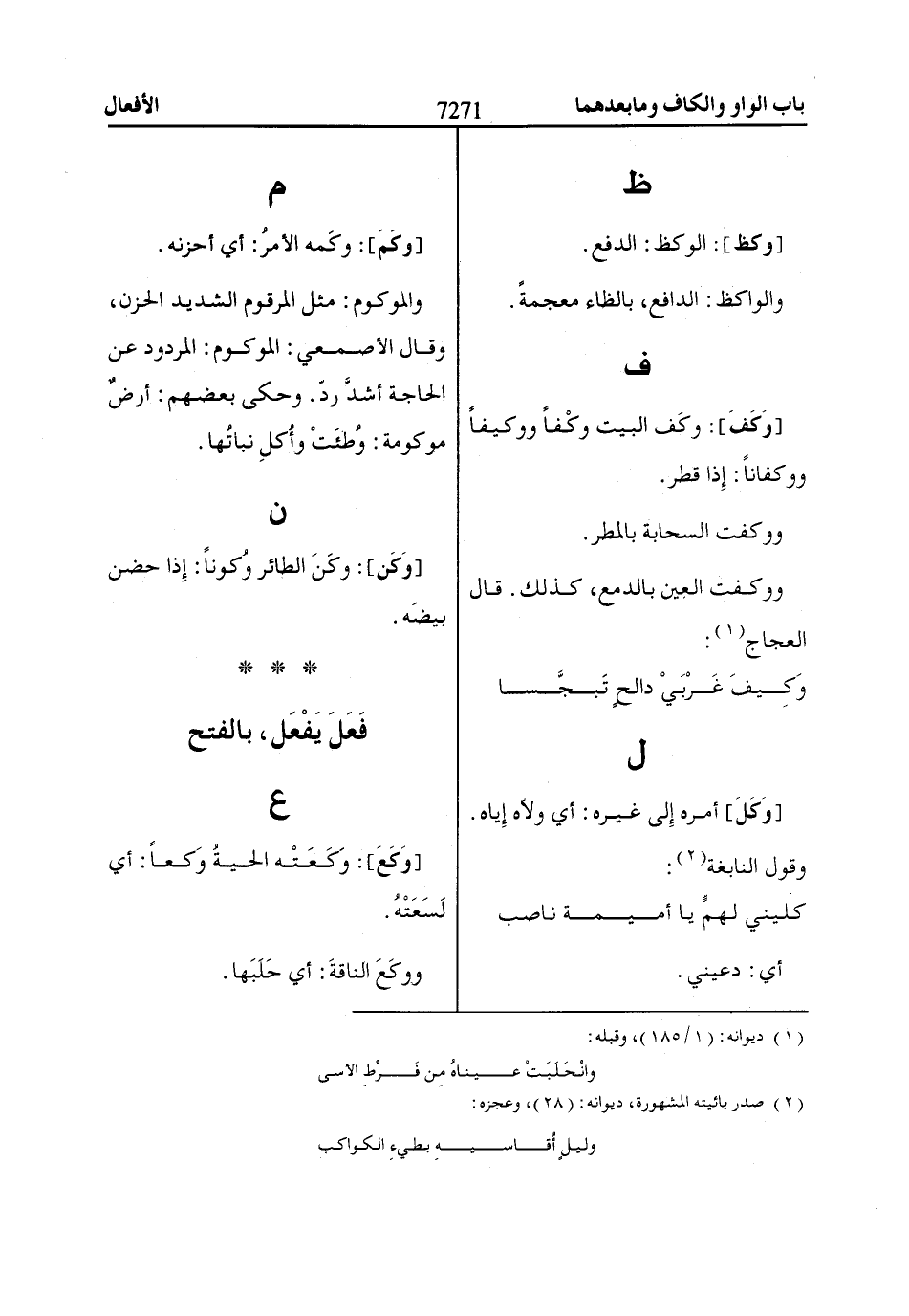 ووكفت العين بالدمع، كذلك. قال العجاج «1»:
