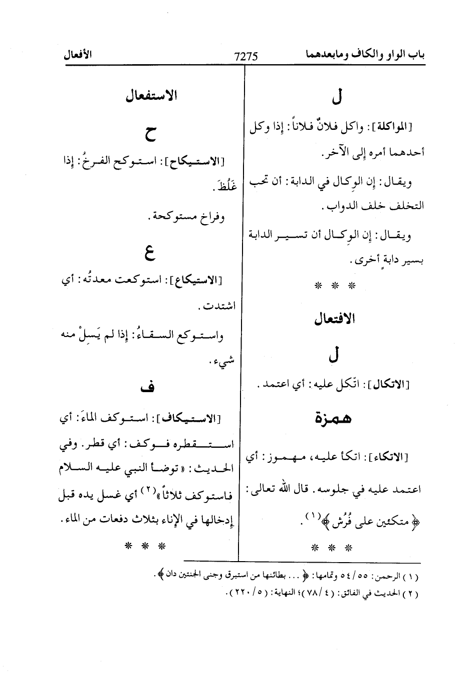 [الاتكاء]: اتكأ عليه، مهموز: أي اعتمد عليه في جلوسه. قال اللّاه تعالى: