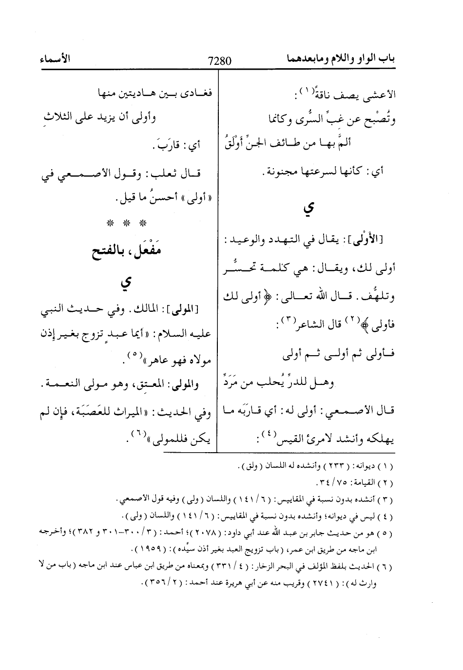 قال ثعلب: وقول الأصمعي في «أولى» أحسنُ ما قيل.