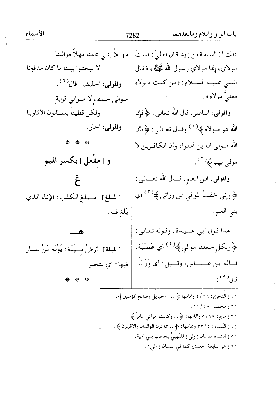 وَإِنِّي خِفْتُ الْمَواالِيَ مِنْ وَراائِي «3» أي بني العم.
