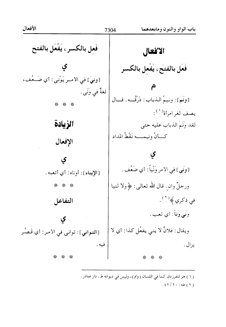 ورجلٌ وانٍ. قال اللّاه تعالى: وَلاا تَنِياا فِي ذِكْرِي «2».
