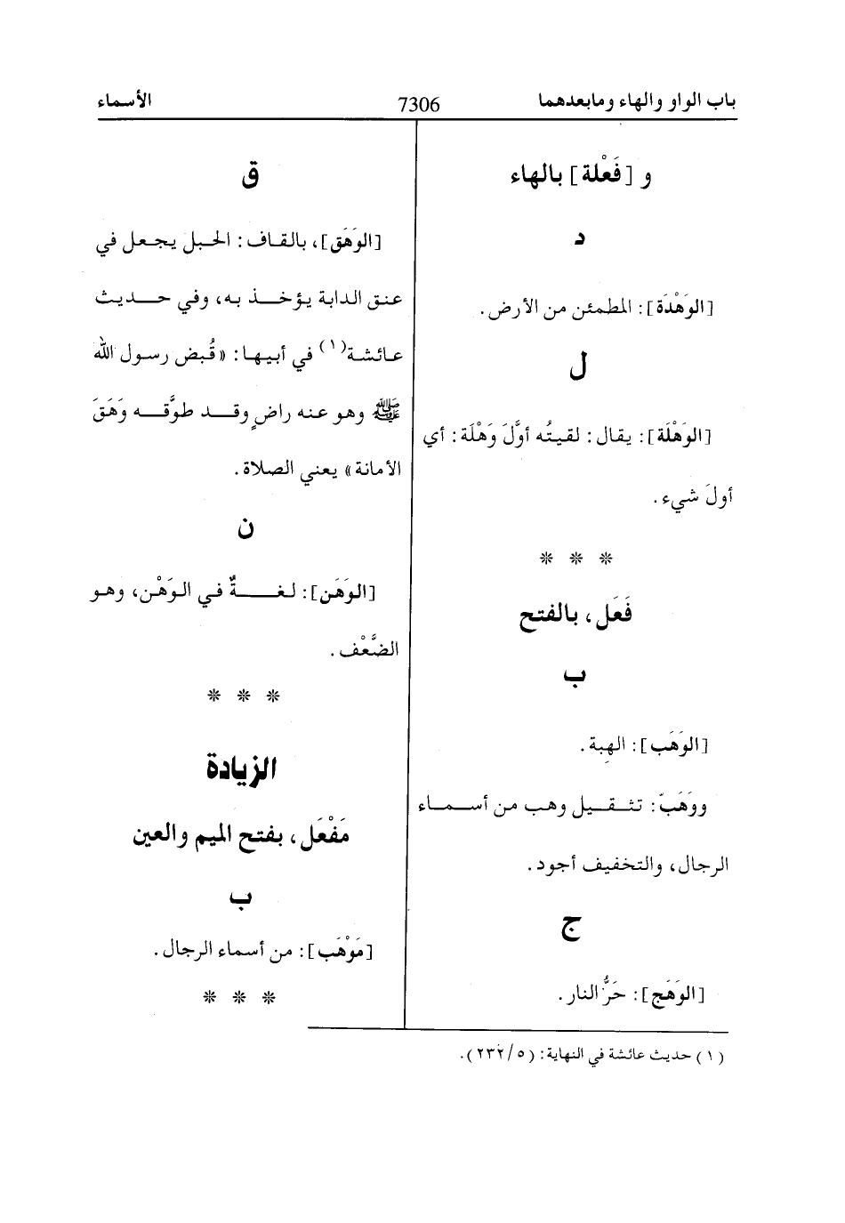 (1) حديث عائشة في النهاية: (5/ 232).