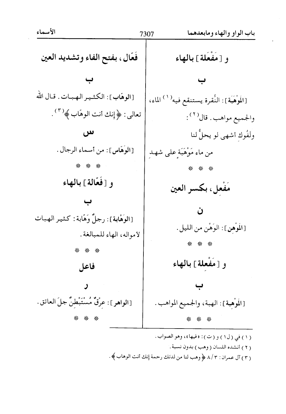 [الوهّاب]: الكثير الهبات. قال اللّاه تعالى: إِنَّكَ أَنْتَ الْوَهّاابُ* «3».