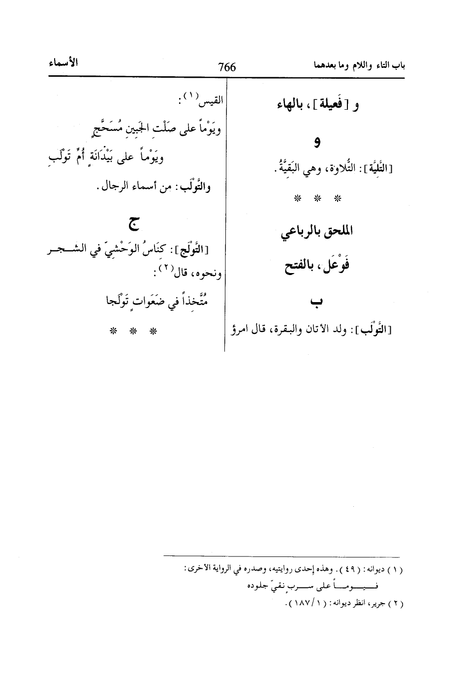 [التَّوْلَج]: كِنَاسُ الوَحْشِيّ في الشجر ونحوه، قال «2»:
