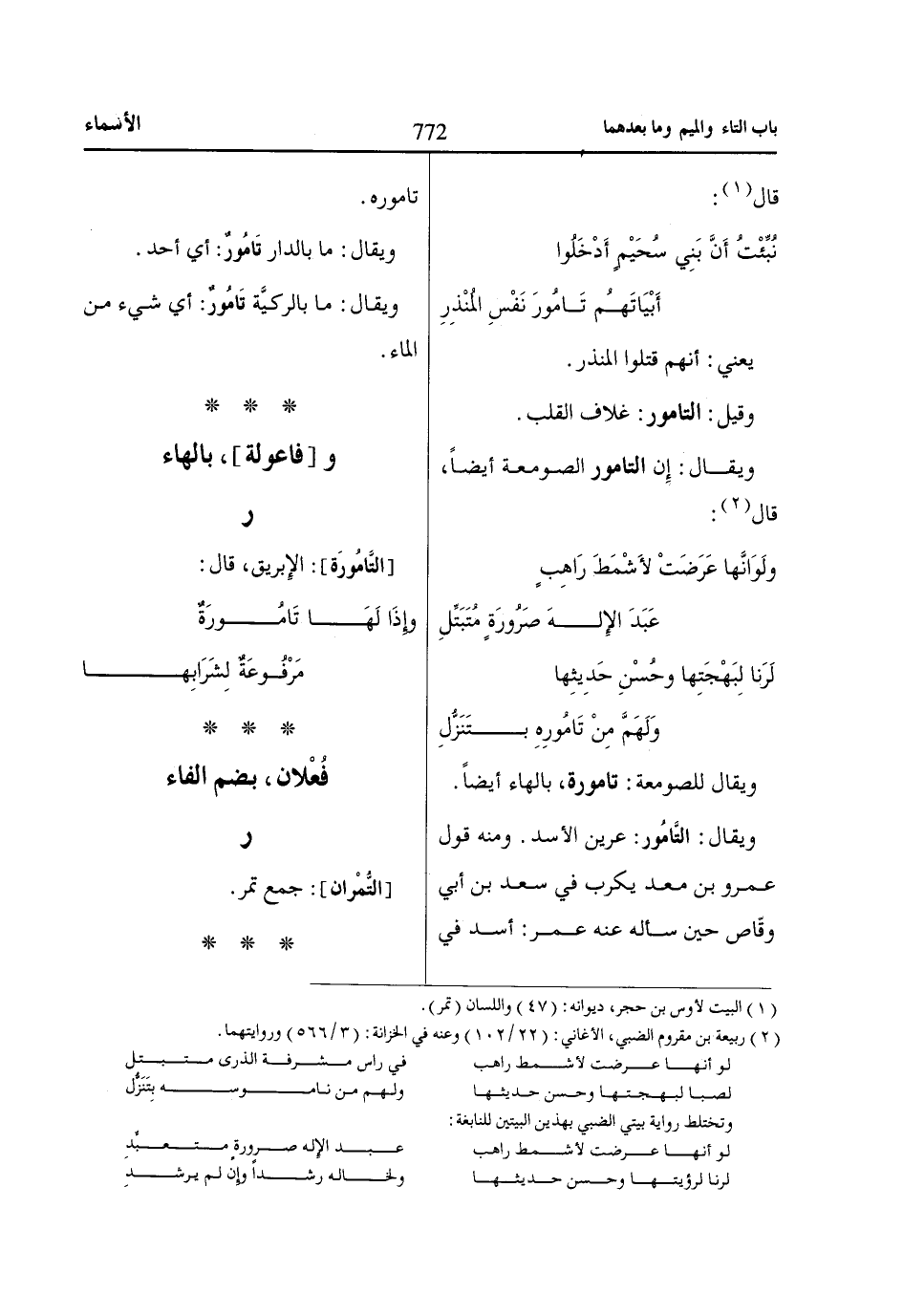 نُبِّئْتُ أَنَّ بَنِي سُحَيْمٍ أَدْخَلُوا ... أَبْيَاتَهُم تَامُورَ نَفْسِ المُنْذِرِ