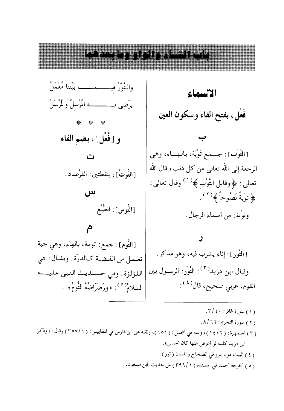 باب التاء والواو وما بعدهما