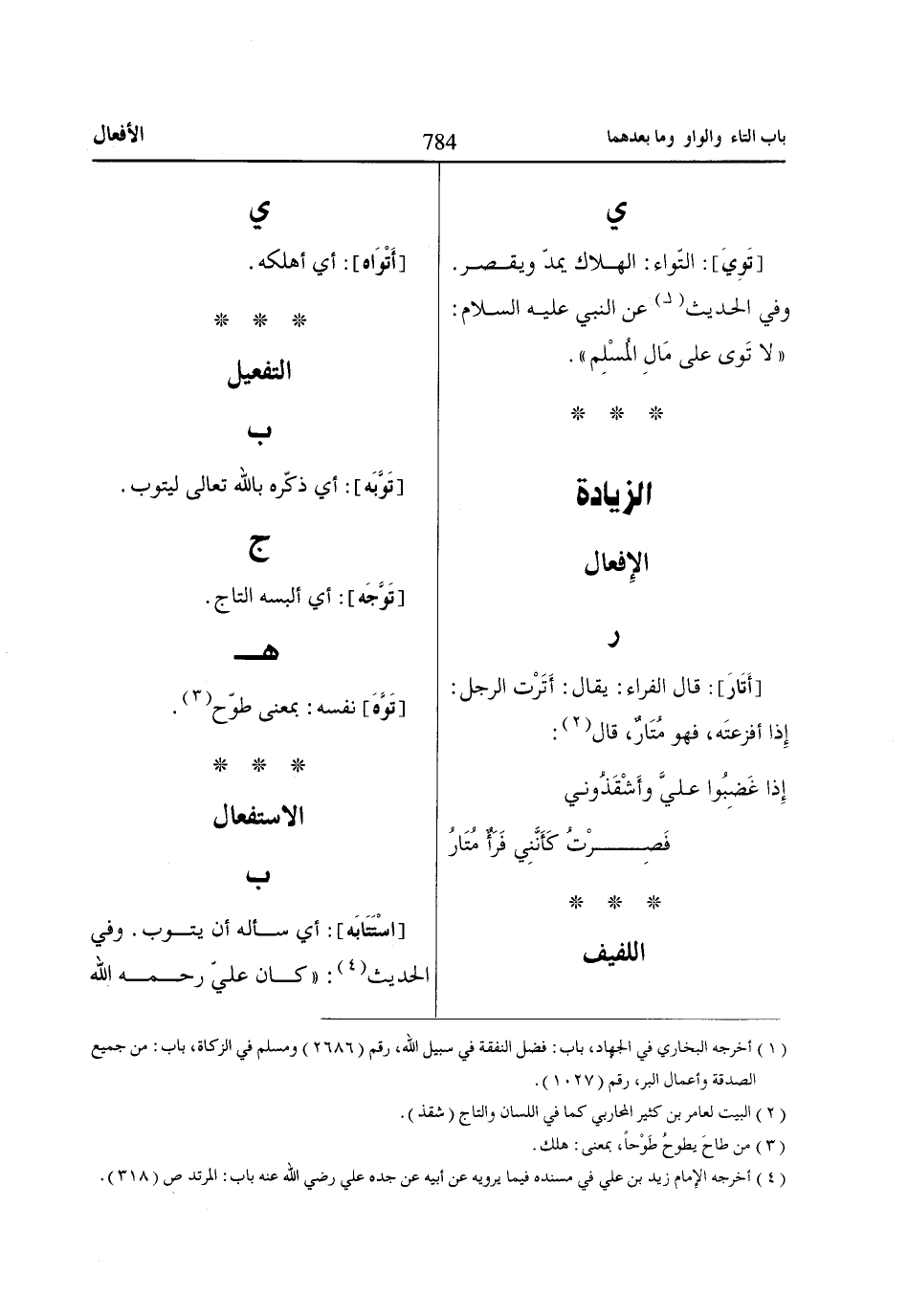 [تَوِيَ]: التّواء: الهلاك يمدّ ويقصر.