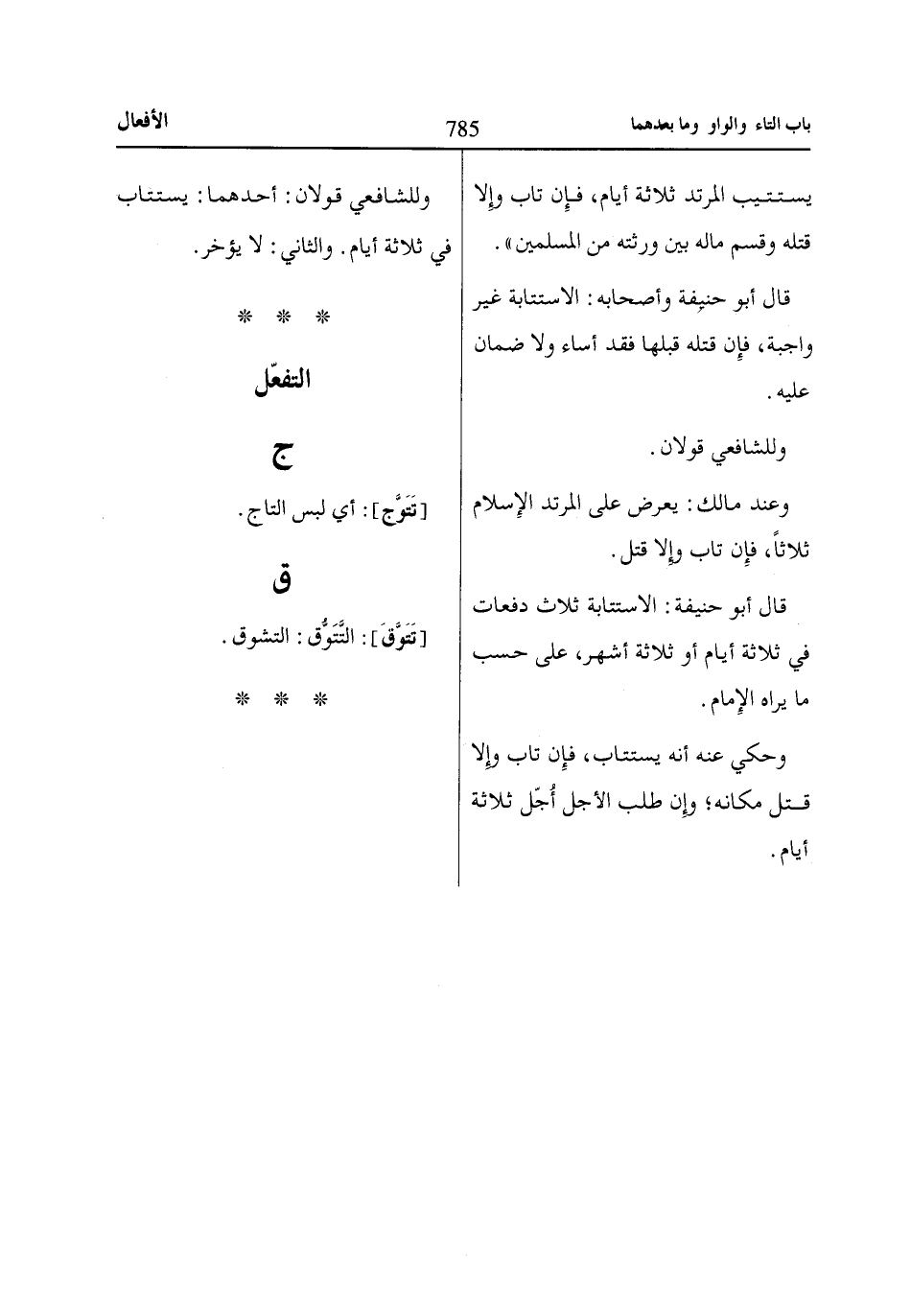 قال أبو حنيفة: الاستتابة ثلاث دفعات في ثلاثة أيام أو ثلاثة أشهر، على حسب ما يراه الإِمام.