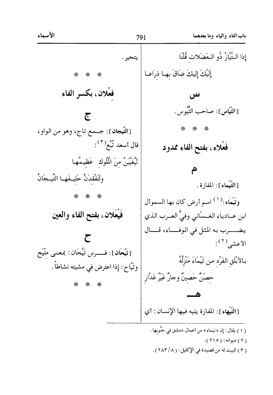 (1) يقال: إِن «تيماء» من أعمال دمشق في جَنُوبِها.