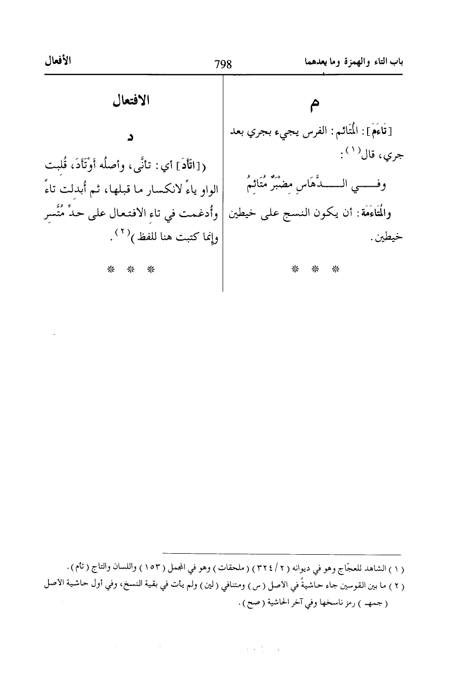 (1) الشاهد للعجّاج وهو في ديوانه (2/ 324) (ملحقات) وهو في المجمل (153) واللسان والتاج (تأم).