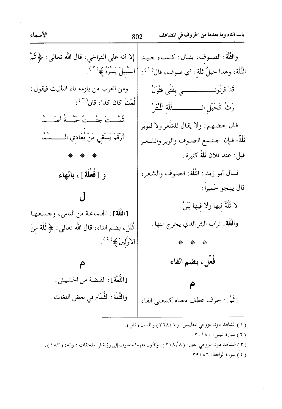 [ثُمَّ]: حرف عطف معناه كمعنى الفاء إِلا أنه على التراخي، قال اللّاه تعالى: ثُمَّ السَّبِيلَ يَسَّرَهُ «2».