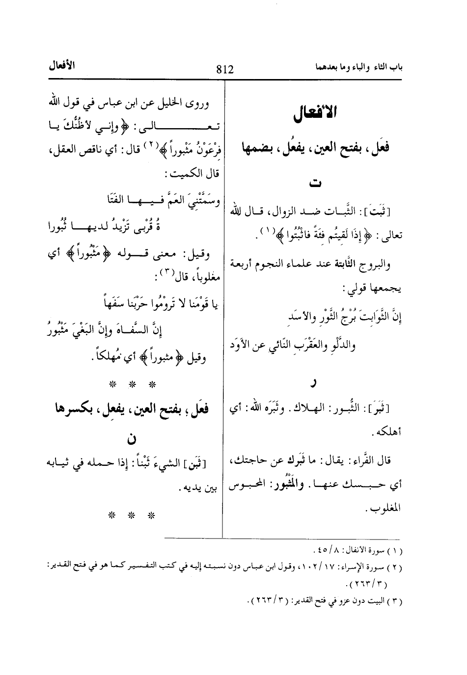 [ثَبَرَ]: الثُّبور: الهلاك. وثَبَرَه اللّاه: أي أهلكه.