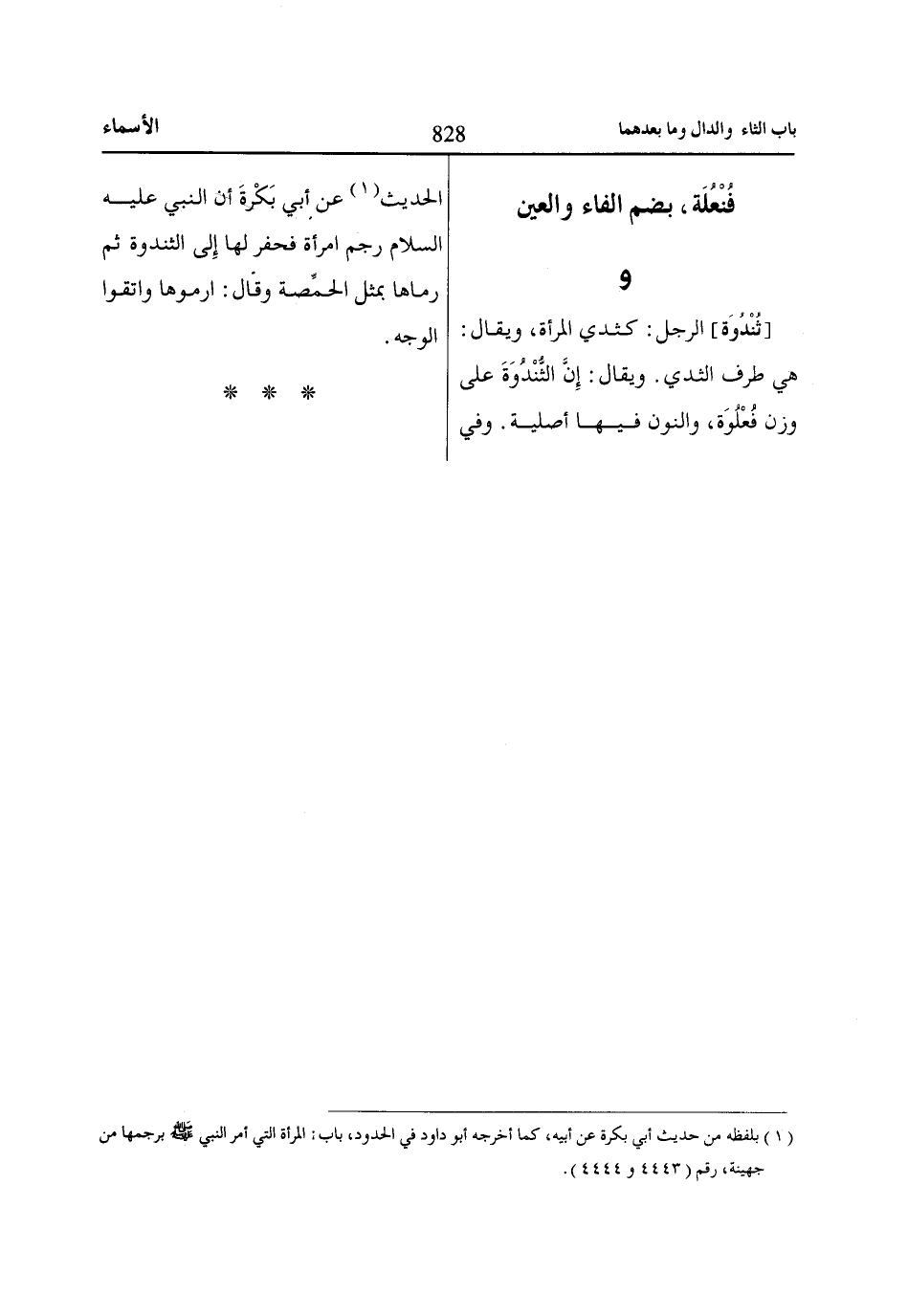 (1) بلفظه من حديث أبي بكرة عن أبيه، كما أخرجه أبو داود في الحدود، باب: المرأة التي أمر النبي صَلى الله عَليه وسلم برجمها من جهينة، رقم (4443 و 4444).