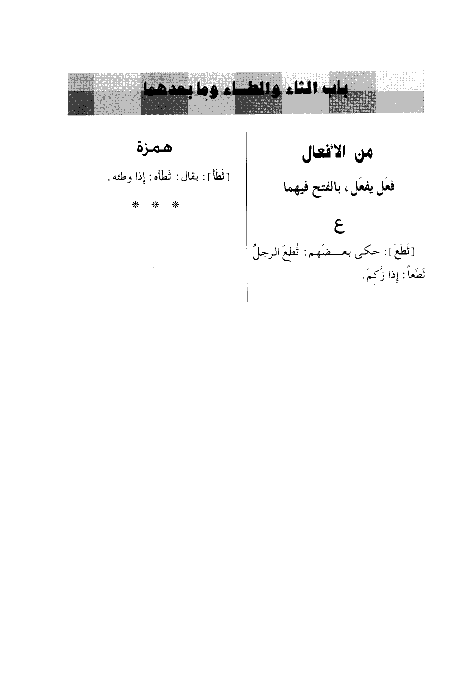 [ثَطَأَ]: يقال: ثَطَأَه: إِذا وطئه.