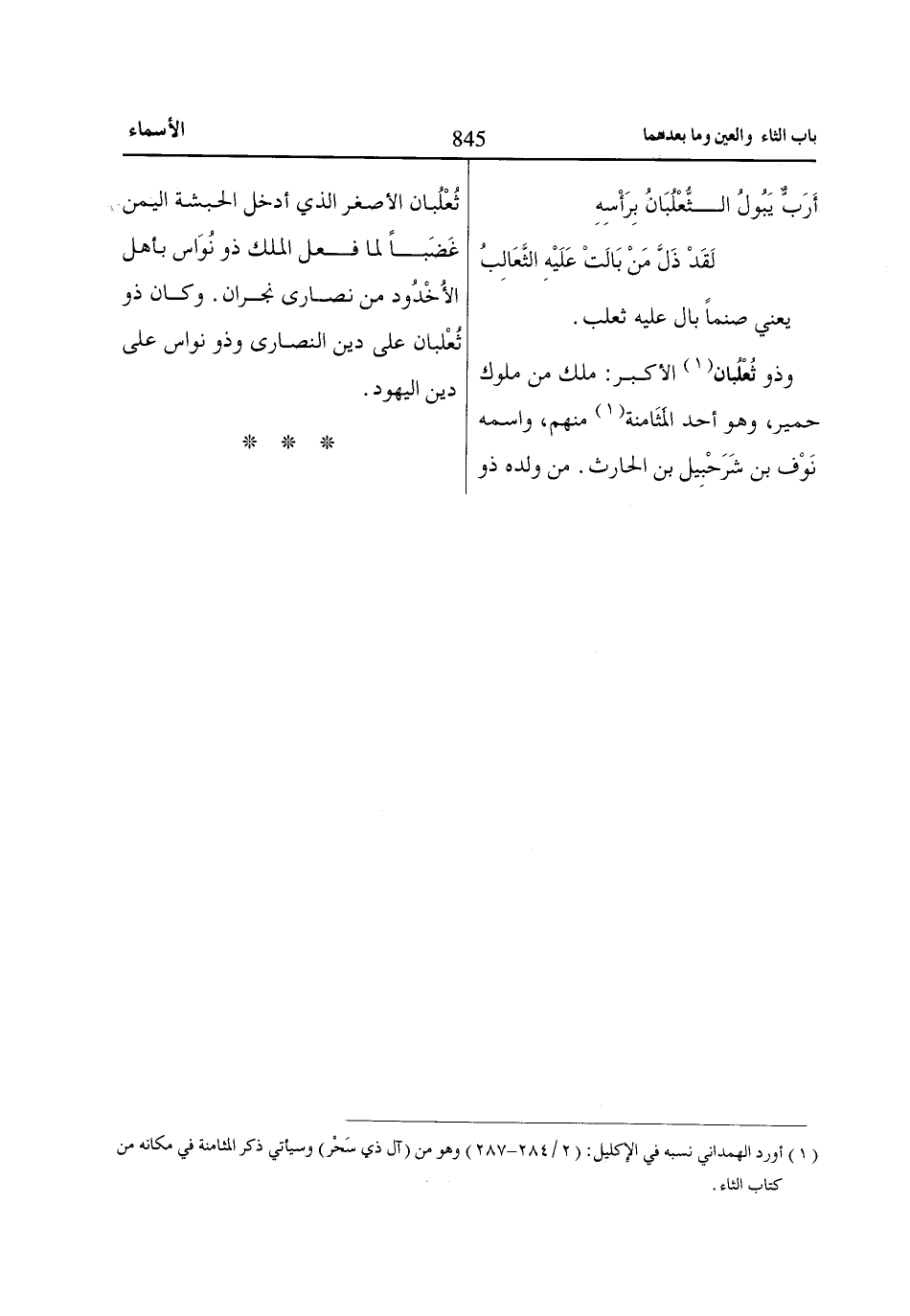 وذو ثُعْلُبان «1» الأكبر: ملك من ملوك حمير، وهو أحد المَثَامنة «1» منهم، واسمه نَوْف بن شَرَحْبِيل بن الحارث. من ولده ذو ثُعْلُبان الأصغر الذي أدخل الحبشة اليمن غَضَباً لما فعل الملك ذو نُوَاس بأهل الأُخْدُود من نصارى نجران. وكان ذو ثُعْلبان على دين النصارى وذو نواس على دين اليهود.