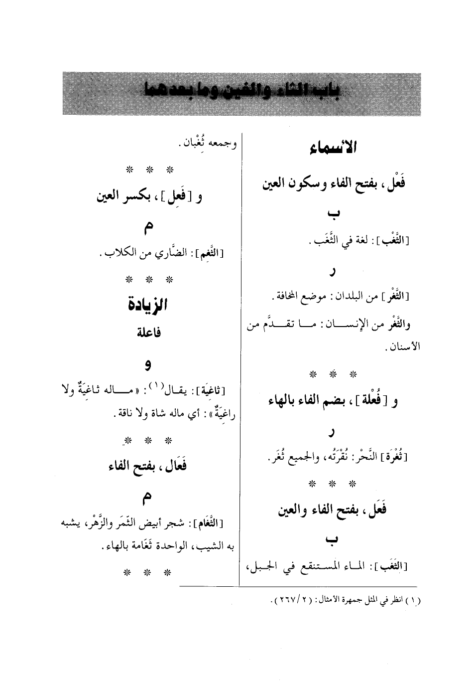 [الثَّغَام]: شجر أبيض الثّمَر والزَّهْر، يشبه به الشيب، الواحدة ثَغَامة بالهاء.