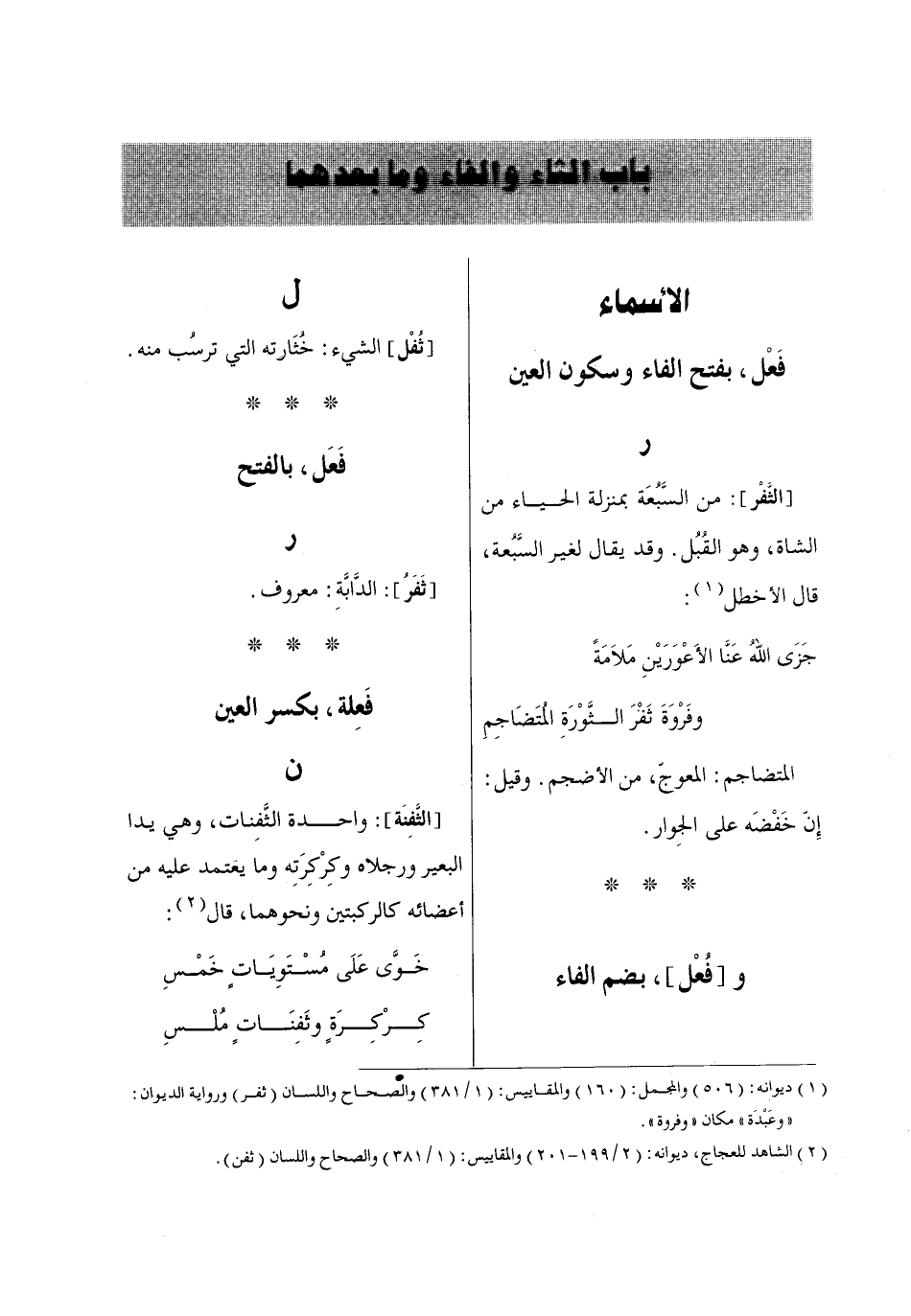 باب الثاء والفاء وما بعدهما