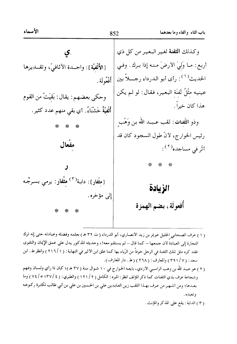 وذو الثَّفِنات: لقب عبد اللّاه بن وَهْبٍ رئيس الخوارج، لأنّ طول السجود كان قد أثّر في مساجده «2»