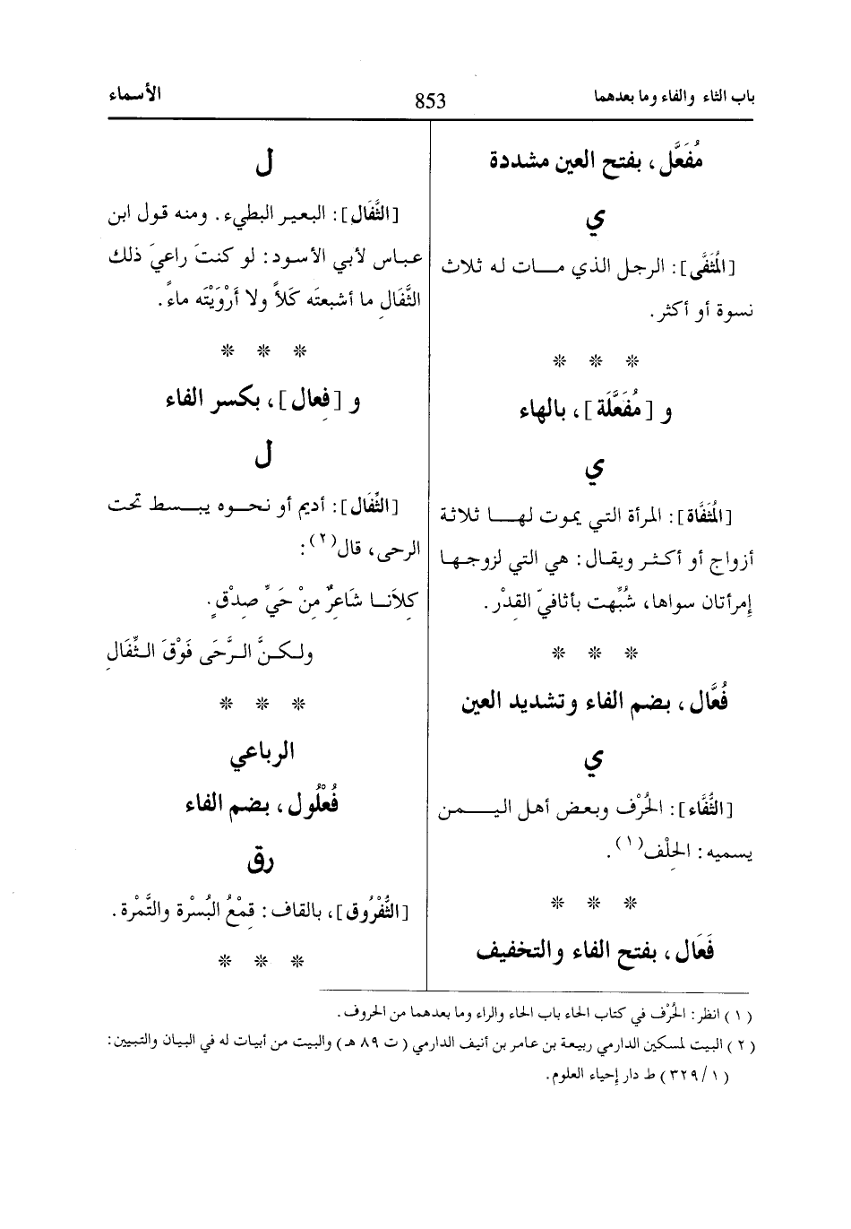 [المُثَفَّى]: الرجل الذي مات له ثلاث نسوة أو أكثر.