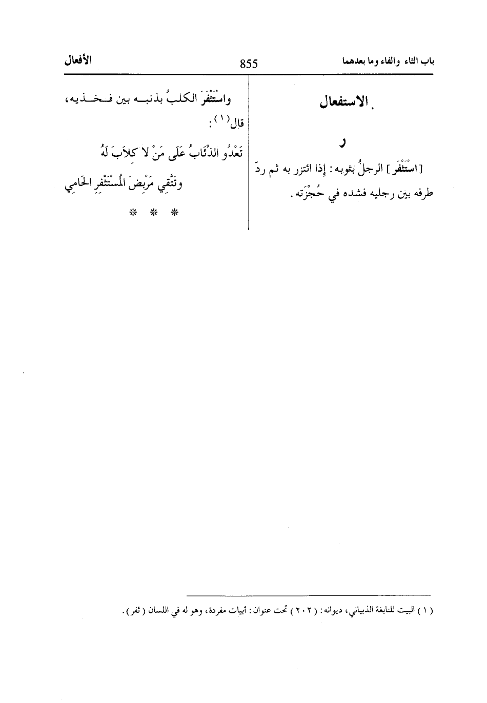 واسْتَثْفَرَ الكلبُ بذنبه بين فخذيه، قال «1»: