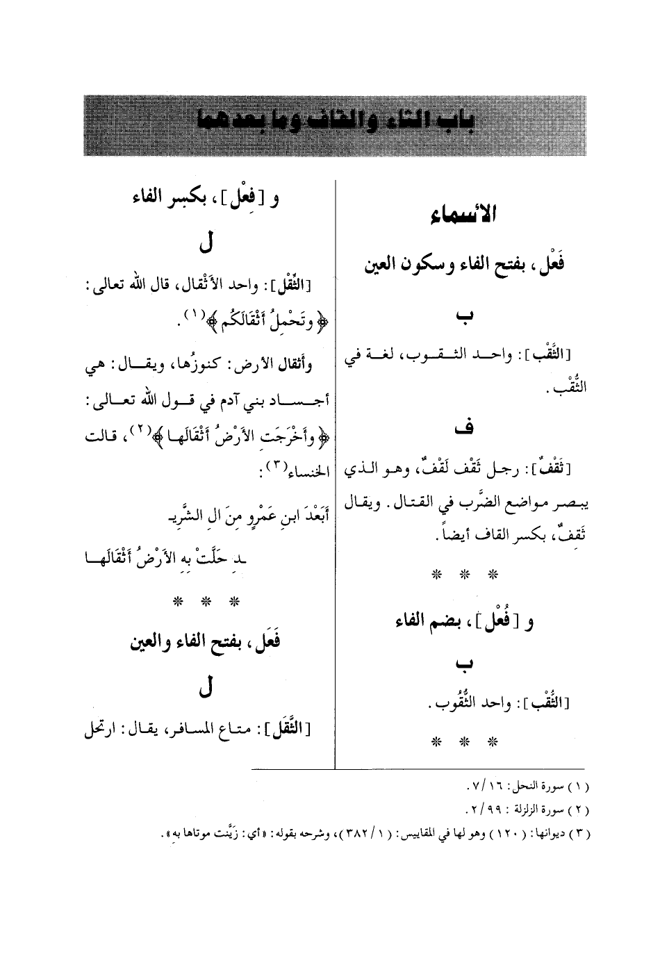 [الثِّقْل]: واحد الأَثْقال، قال اللّاه تعالى: