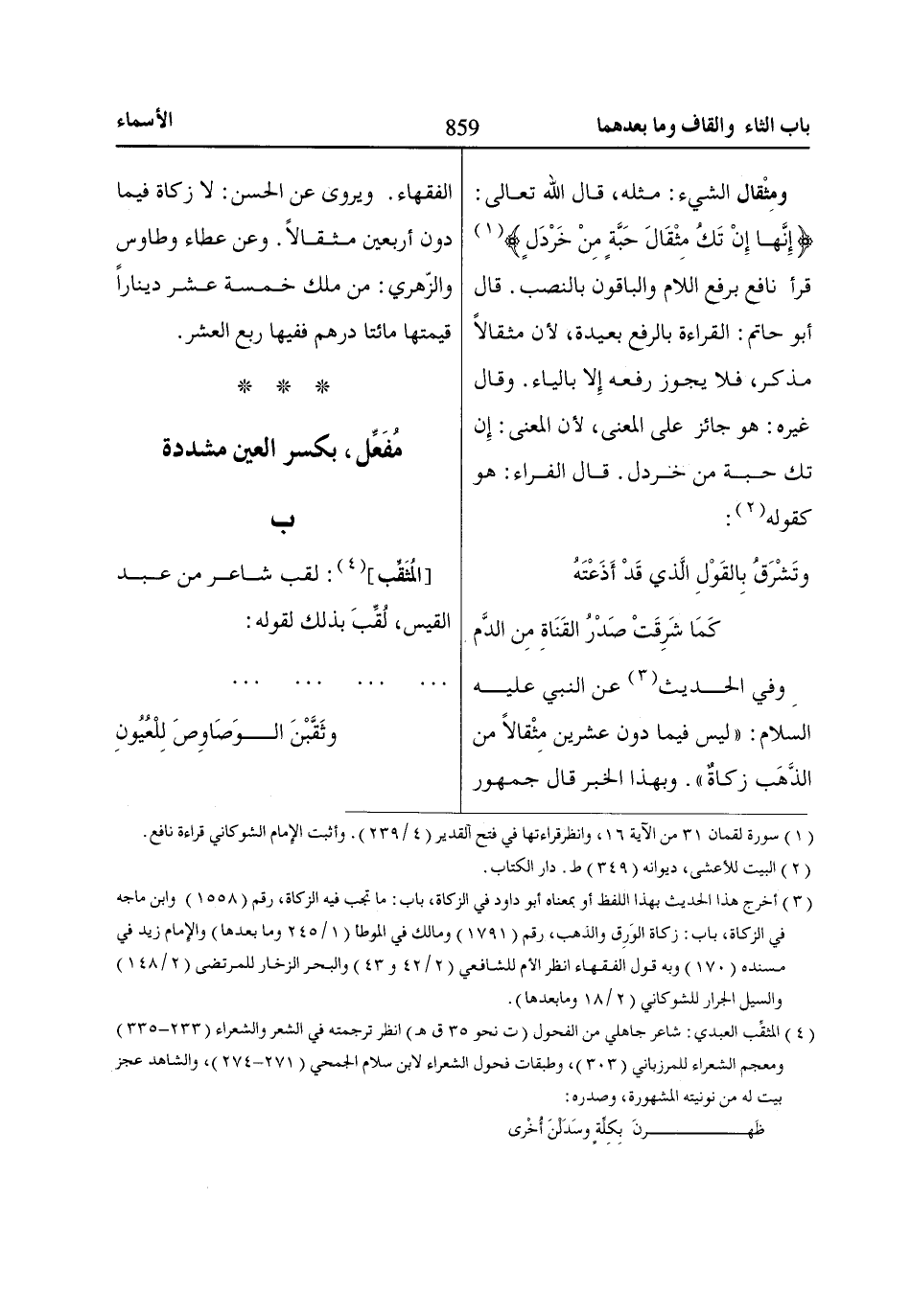 (1) سورة لقمان 31 من الآية 16، وانظر قراءتها في فتح القدير (4/ 239). وأثبت الإِمام الشوكاني قراءة نافع.