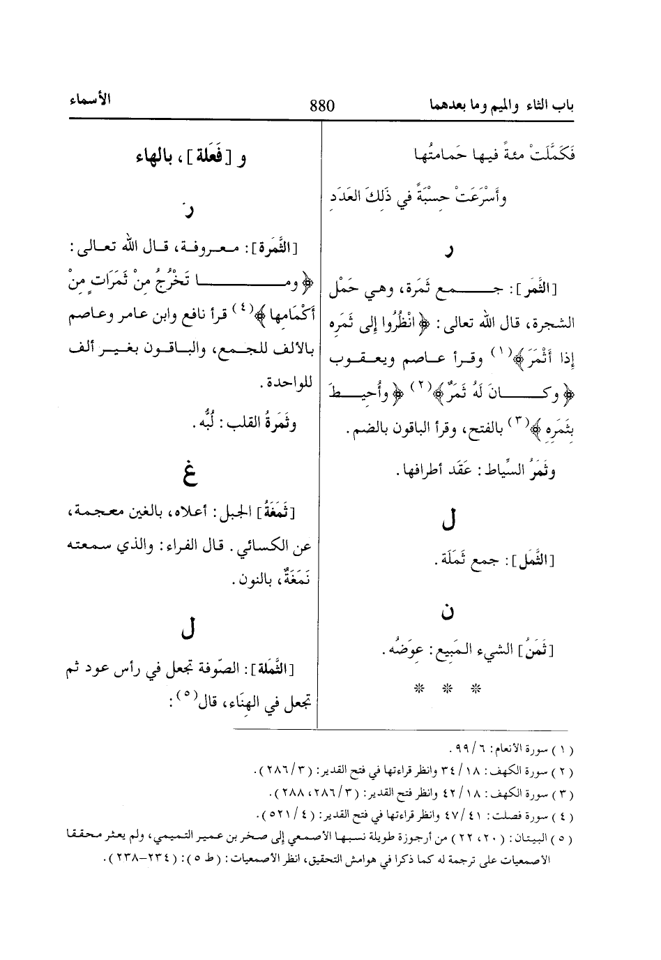 [الثَّمَرة]: معروفة، قال اللّاه تعالى: