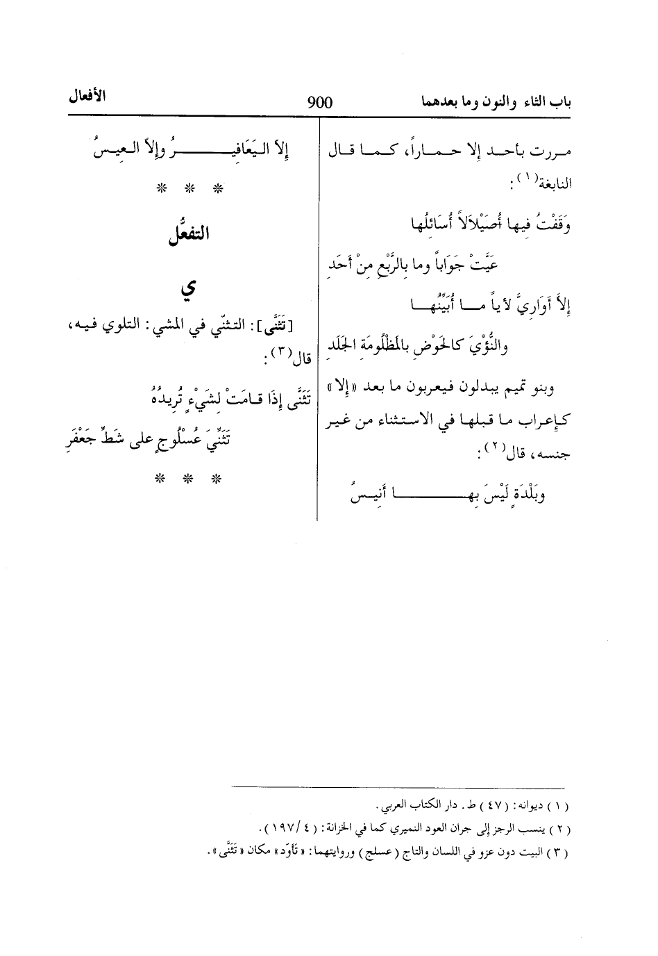 [تَثَنَّى]: التثنّي في المشي: التلوي فيه، قال «3»:
