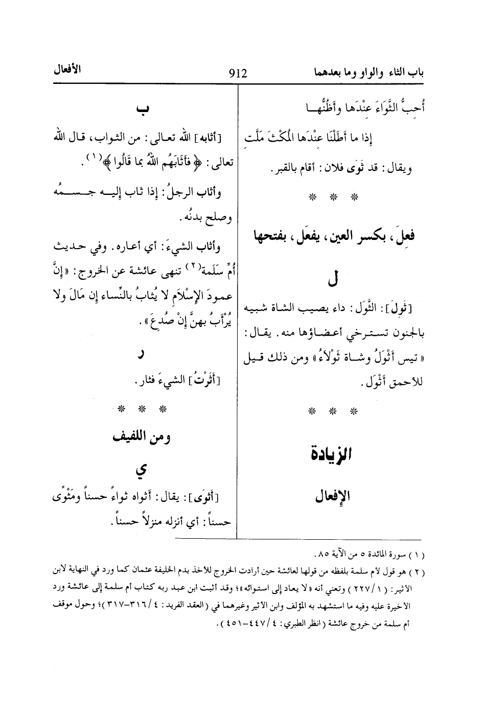 (2) هو قول لأم سلمة بلفظه من قولها لعائشة حين أرادت الخروج للأخذ بدم الخليفة عثمان كما ورد في النهاية لابن الأثير: (1/ 227) وتعني أنه «لا يعاد إِلى استوائه»؛ وقد أثبت ابن عبد ربه كتاب أم سلمة إِلى عائشة ورد الأخيرة عليه وفيه ما استشهد به المؤلف وابن الأثير وغيرهما في (العقد الفريد: 4/ 316 - 317)؛ وحول موقف أم سلمة من خروج عائشة (انظر الطبري: 4/ 447 - 451).