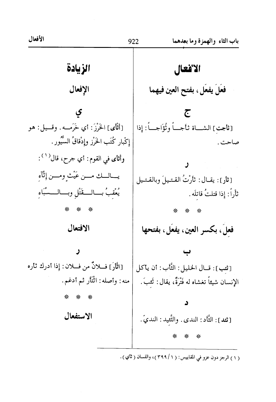 (1) الرجز دون عزو في المقاييس: (1/ 399)، واللسان (ثأي).