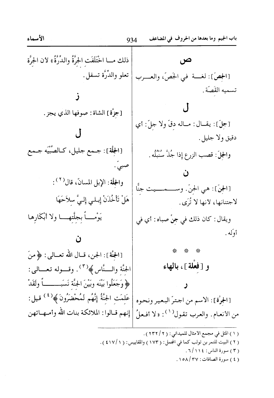 [الجِنَّة]: الجن، قال اللّاه تعالى: مِنَ الْجِنَّةِ وَالنّااسِ* «3». وقوله تعالى: