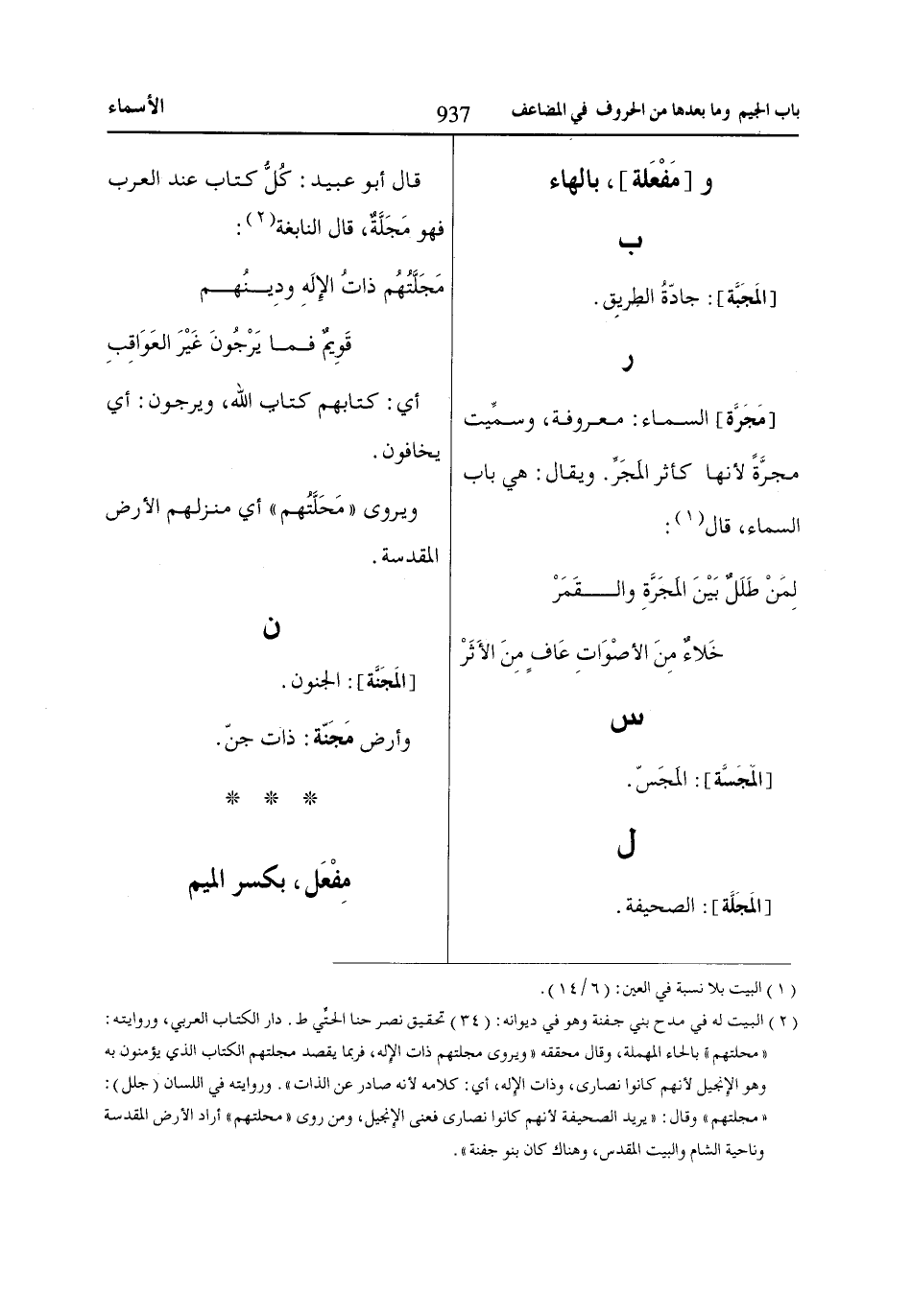 قال أبو عبيد: كُلُّ كتاب عند العرب فهو مَجَلَّةٌ، قال النابغة «2»: