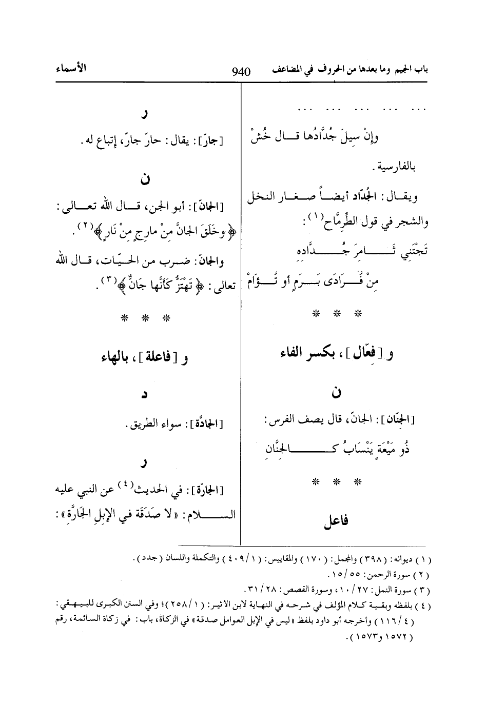 والجانّ: ضرب من الحيّات، قال اللّاه تعالى: تَهْتَزُّ كَأَنَّهاا جَانٌّ* «3».
