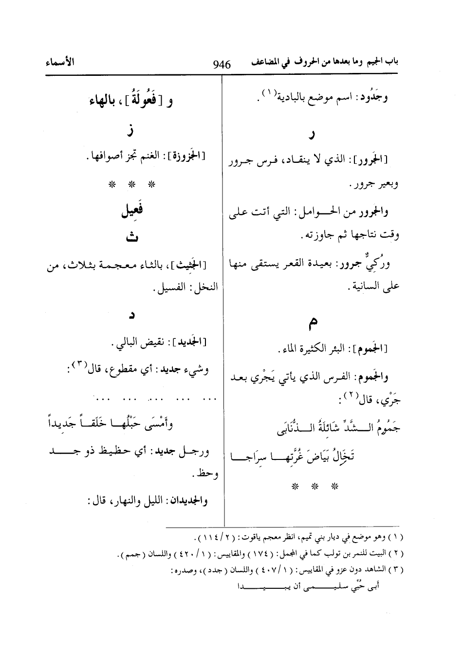 (3) الشاهد دون عزو في المقاييس: (1/ 407) واللسان (جدد)، وصدره: