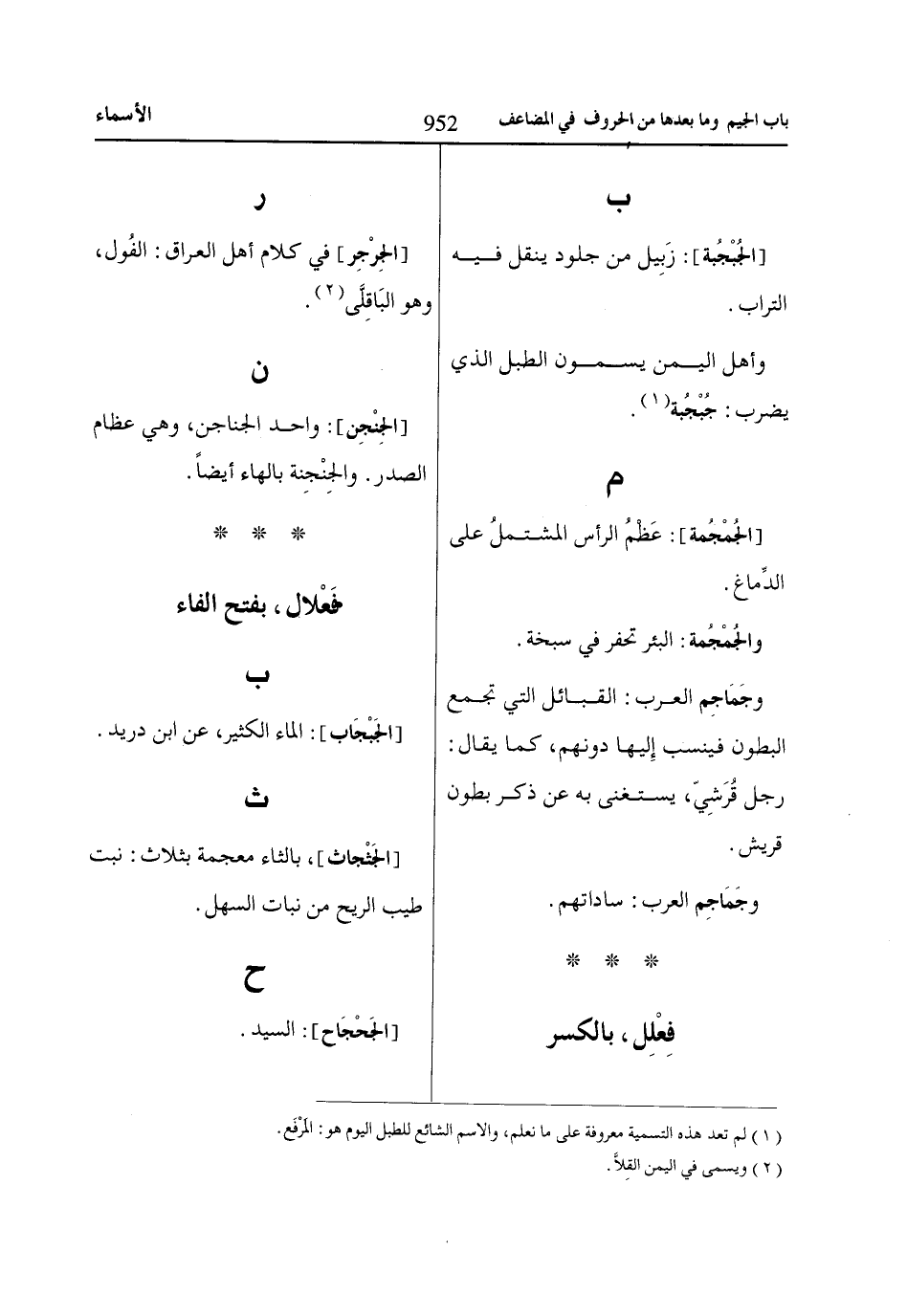 وجَمَاجِم العرب: القبائل التي تجمع البطون فينسب إِليها دونهم، كما يقال:
