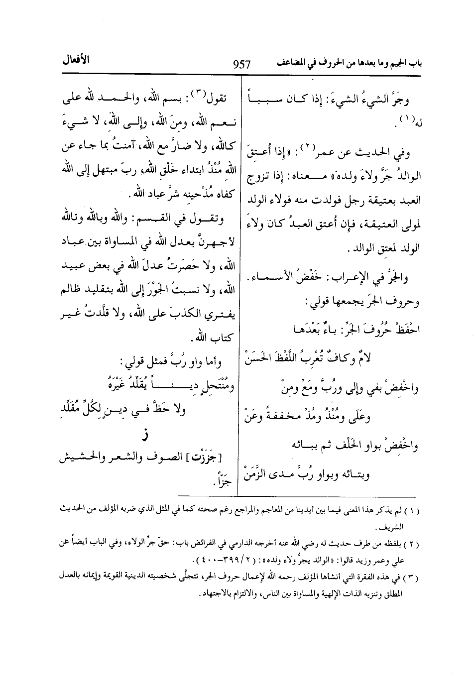 (3) في هذه الفقرة التي أنشأها المؤلف رحمه اللّاه لإِعمال حروف الجر، تتجلَّى شخصيته الدينية القويمة وإِيمانه بالعدل المطلق وتنزيه الذات الإِلهية والمساواة بين الناس، والالتزام بالاجتهاد.